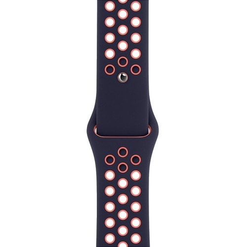 Apple 44mm Blue Black/Bright Mango Nike Sport Band - Regular - Adjustable - Regular - Pin-and-tuck Attachment - Blue Black/Bright Mango - Fluoroelastomer